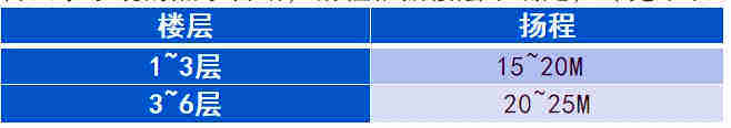 含回水系統(tǒng)的熱水管路,揚(yáng)程根據(jù)樓層來確定,詳見下表